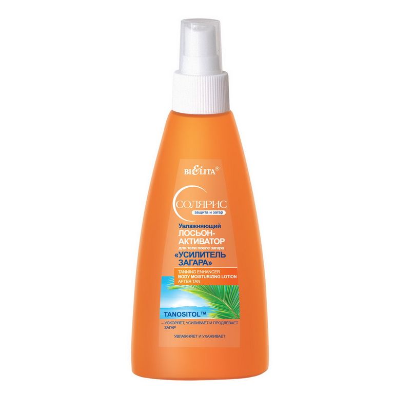Увлажняющий лосьон-активатор для тела после загара «Усилитель загара» великолепно впитывается, придает ощущение комфорта и свежести, помогает надолго сохранить загар и сияние кожи.