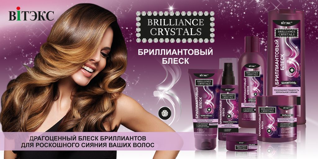 Линия «Brilliance Crystals» - это не просто бриллиант в коллекции косметики для волос компании «ВИТЭКС», это настоящее бриллиантовое ожерелье. В основе линии – драгоценные микрокристаллы бриллиантов и pro-керамиды, искусно соединенные в технологии жидких кристаллов, чтобы каждое средство могло подарить локонам роскошную шелковую гладкость и невероятное зеркальное сияние.Ключевые компоненты проникают глубоко в структуру волос, восстанавливают и разглаживают их от корней до кончиков, обволакивают каждый волосок невесомой светоотражающей пленкой, и даже самые тусклые и поврежденные пряди приобретают желанную прочность, шелковистость и переливающийся бриллиантовый блеск.