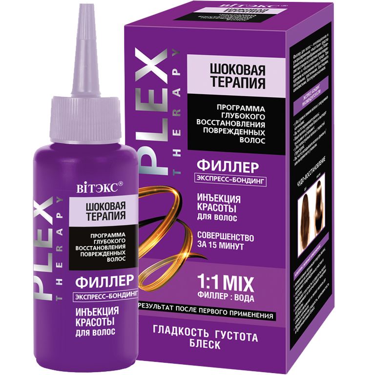 Примечание: Перед применением рекомендуется вымыть волосы шампунем линии Plex Theraphy Шоковая терапия для более глубокого проникновения филлера. Для восстановления очень поврежденных волос используйте 1-2 раза в неделю курсом 3-4 недели. Можно использовать также разово в качестве экспресс средства для улучшения внешнего вида волос.