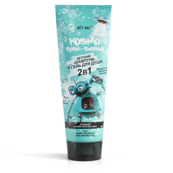 Детский шампунь и гель для душа 2в1 перенесет тебя по звездной галактике на планету роботов ROBO-Bubble, где свежий аромат инопланетных трав погружает в атмосферу творчества и фантазии. Вместе с любознательным роботом ты сможешь открыть тайну космических пузырьков в нежной пушистой пене, которая нежно и бережно очищает кожу и волосы, придает блеск волосам и облегчает расчесывание, дарит коже мягкость и шелковистость. Космические экстракты ромашки и календулы увлажняют и успокаивают детскую кожу, предупреждают сухость и шелушение.