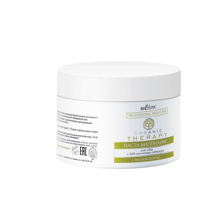 Применение: нанести пасту-биопилинг на очищенную кожу лица, шеи и декольте, избегая области вокруг глаз и губ. Через 5 - 10 минут тщательно смыть водой. Продолжить процедуру согласно протоколу. Внимание: Не оставлять процесс пилинга без внимания. В случае появления устойчивого покраснения и сильного пощипывания сразу смыть большим количеством воды. Не допускать попадания в глаза. Не наносить пилинг на поврежденную, раздраженную кожу, а также в период обострения инфекционных кожных заболеваний.