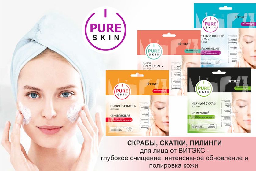 Забота о коже предполагает ее регулярное очищение. Линия скрабов для лица PURE SKIN от Витэкс – это потрясающие средства, которые быстро очистят вашу кожу, удалив с нее ороговевшие частички клеток, делая ее ровной, гладкой и мягкой. Эффект после использования скраба моментальный. Кожа становится более гладкой, нежной, бархатистой. Усиливается микроциркуляция крови, улучшается цвет лица.