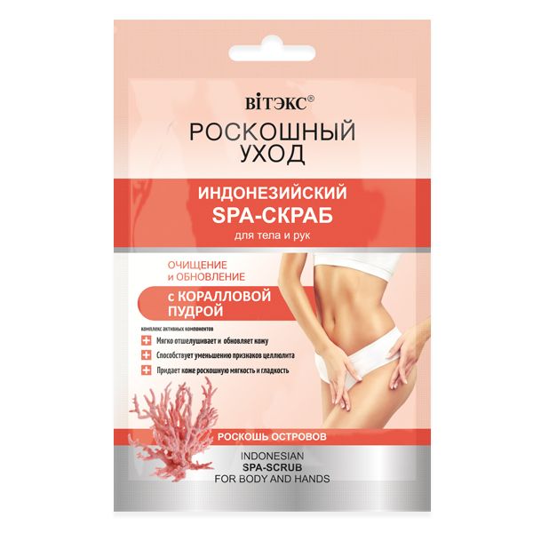 Королевский коралловый SPA-скраб с маслом монои, балийским цветком и драгоценной коралловой пудрой воздействует на кожу в лучших традициях SPA. Бережно и максимально эффективно очищает и обновляет кожу, заставляя кожу «дышать». Коралловая пудра из сердца полинезийских лагун исключительно мягко отшелушивает ороговевшие клетки эпидермиса, не царапая кожу. SPA-магия невиданной композиции масла монои и экстракта балийского цветка улучшает кровообращение в глубоких слоях кожи и сокращает проявления целлюлита, способствуя восстановлению контуров тела.