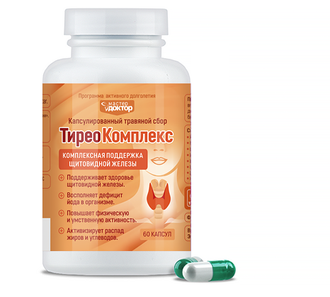 ТиреоКомплекс - капсулированный травяной сбор ТиреоКомплекс осуществляет комплексную поддержку щитовидной железы, гармонизирует её функциональную активность, улучшает регулирующее влияние щитовидной железы на весь организм, все виды обмена веществ.