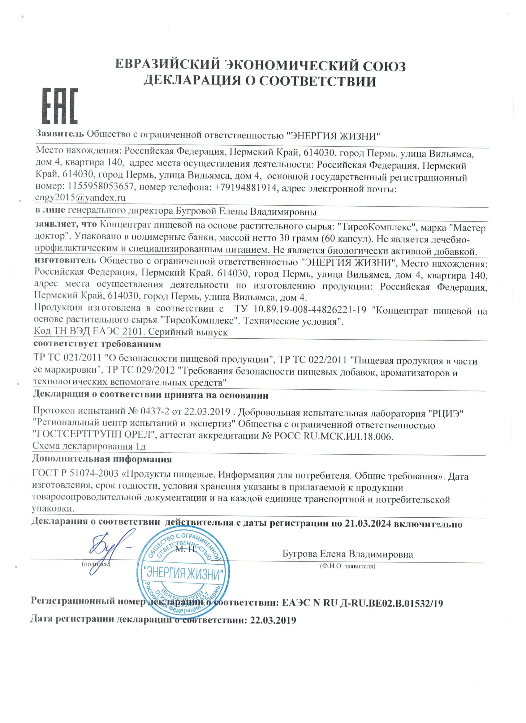 КАПСУЛИРОВАННЫЙ ТРАВЯНОЙ СБОР ТИРЕОКОМПЛЕКС ВКЛЮЧЕН В ПРОГРАММУ АКТИВНОГО ДОЛГОЛЕТИЯ ПРОДУКТОВ ЛИНИИ МАСТЕР ДОКТОР