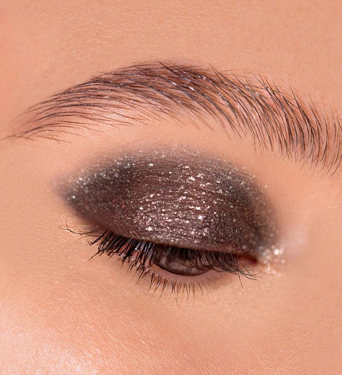 Идеальный приём для создания макияжа smoky eyes с эффектным блестящим акцентом. Нанесите глиттер поверх пудровых (сухих) теней в качестве сверкающего топ-покрытия.